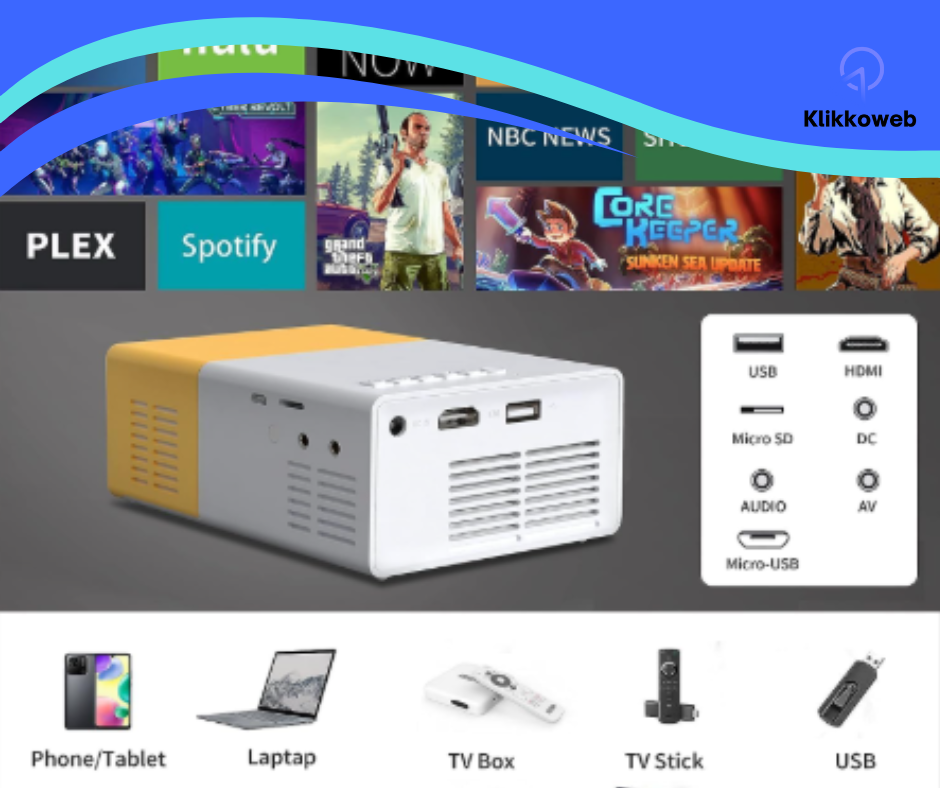 Con este proyector portátil de alta definición, puedes disfrutar de películas, series o videojuegos proyectados de forma amplia, desde la comodidad de tu casa o donde tú quieras.